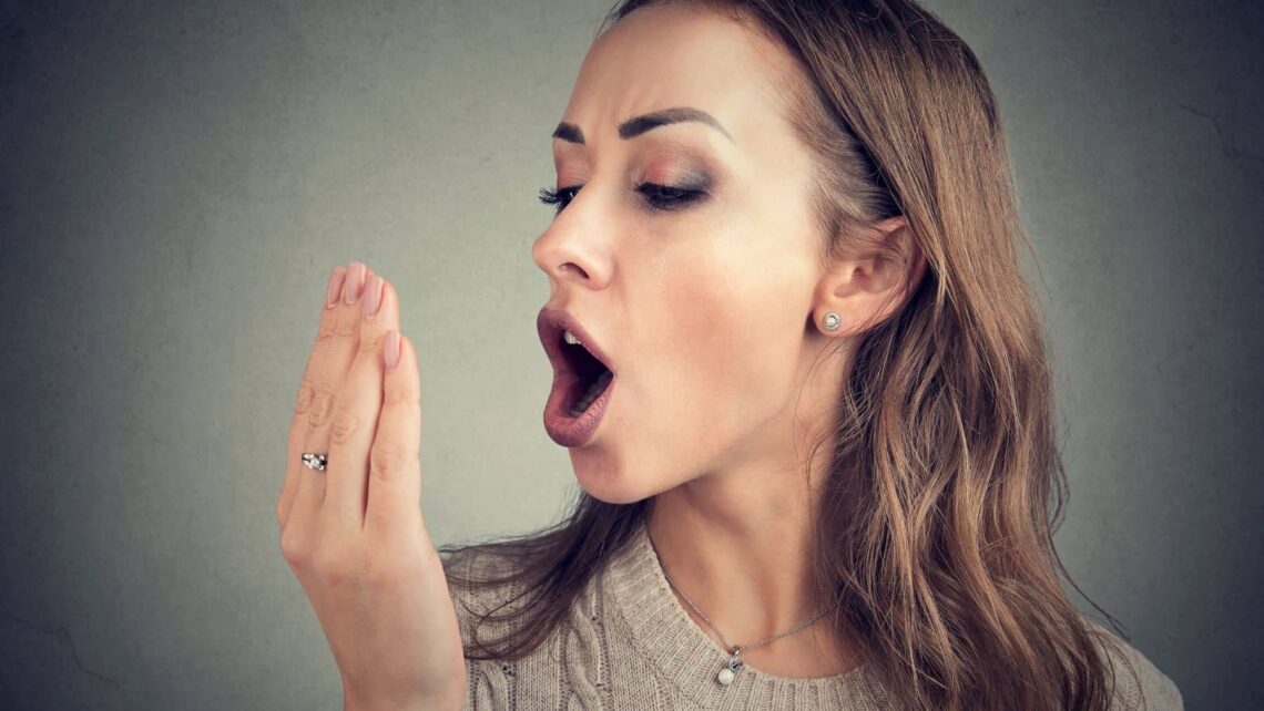 Mujer con mal aliento.