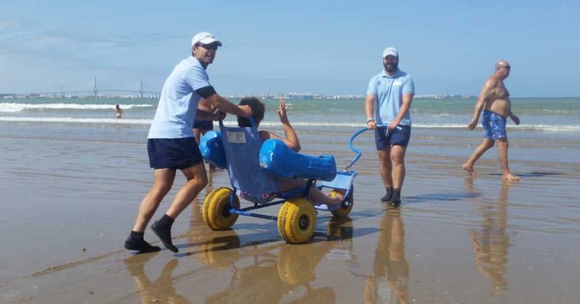 En pleno mes de julio, ya era hora de que el verano comenzase para todos en la provincia de Cádiz. Concretamente, en las playas de El Puerto de Santa María, donde la asociación de Personas con Diversidad Funcional La Gaviota ha puesto en marcha el programa Hidrosport de ayuda al baño en la playa de Valdelagrana.