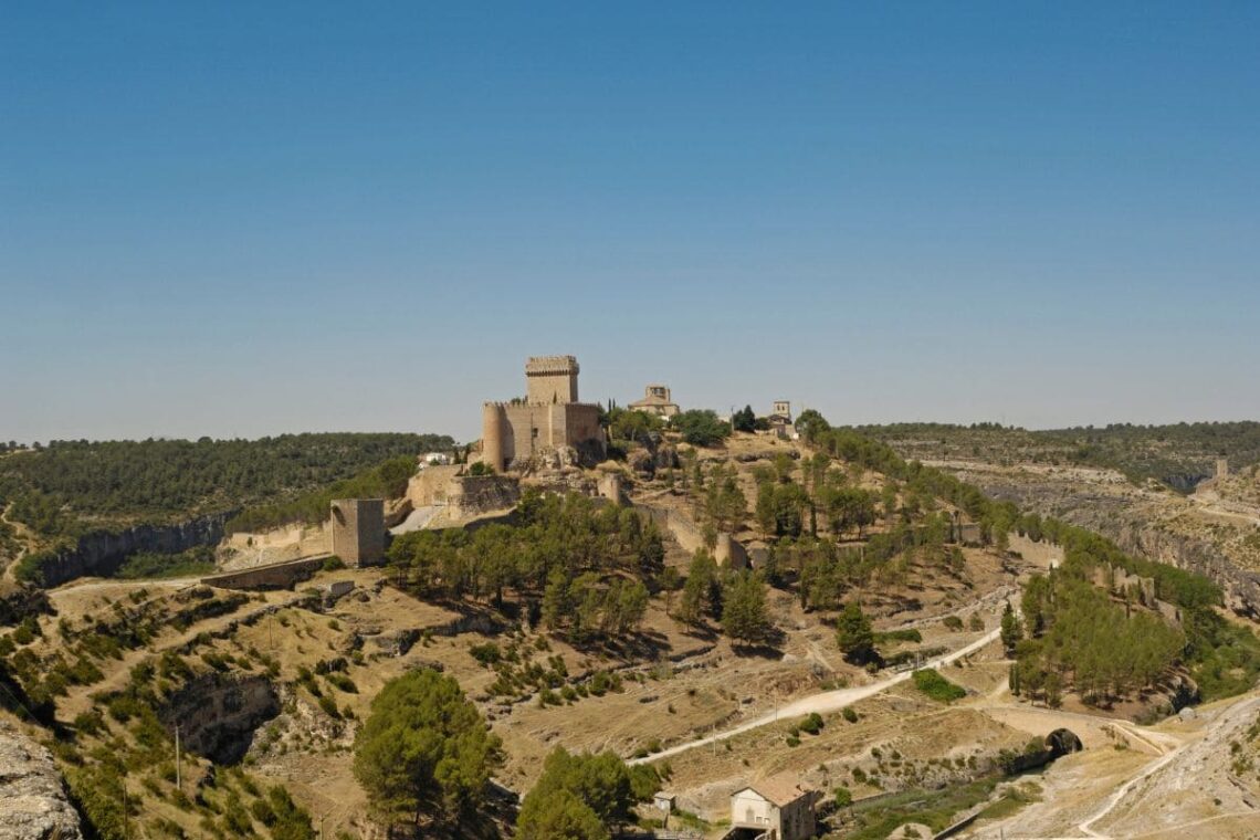 El castillo de Alarcón es una fortaleza que sitúa su origen en la época prerromana. Además, fue ciudadela árabe y desde 1184, baluarte cristiano. La estética actual es mayoritariamente gótica salvo por su torre del homenaje que es renacentista. El recinto está estructurado en torno a un pequeño patio interior con aljibe. Cabe señalar, que uno de los más célebres señores del castillo fue Don Juan Manuel, que pasó a la historia por su libro ‘El Conde Lucanor’.