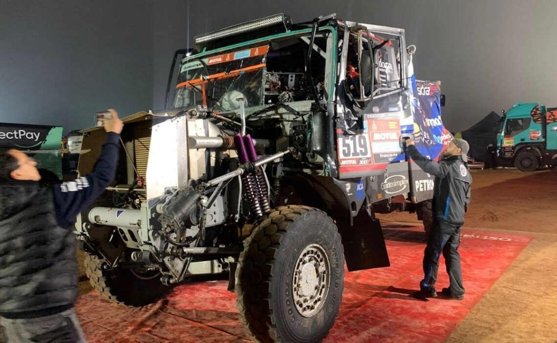 Albert Llovera fue uno de los grandes protagonistas de la jornada, pues volcó su camión tras un accidente. Sin embargo, el gran trabajo de sus ayudantes le sirvió para poder continuar en la prueba.