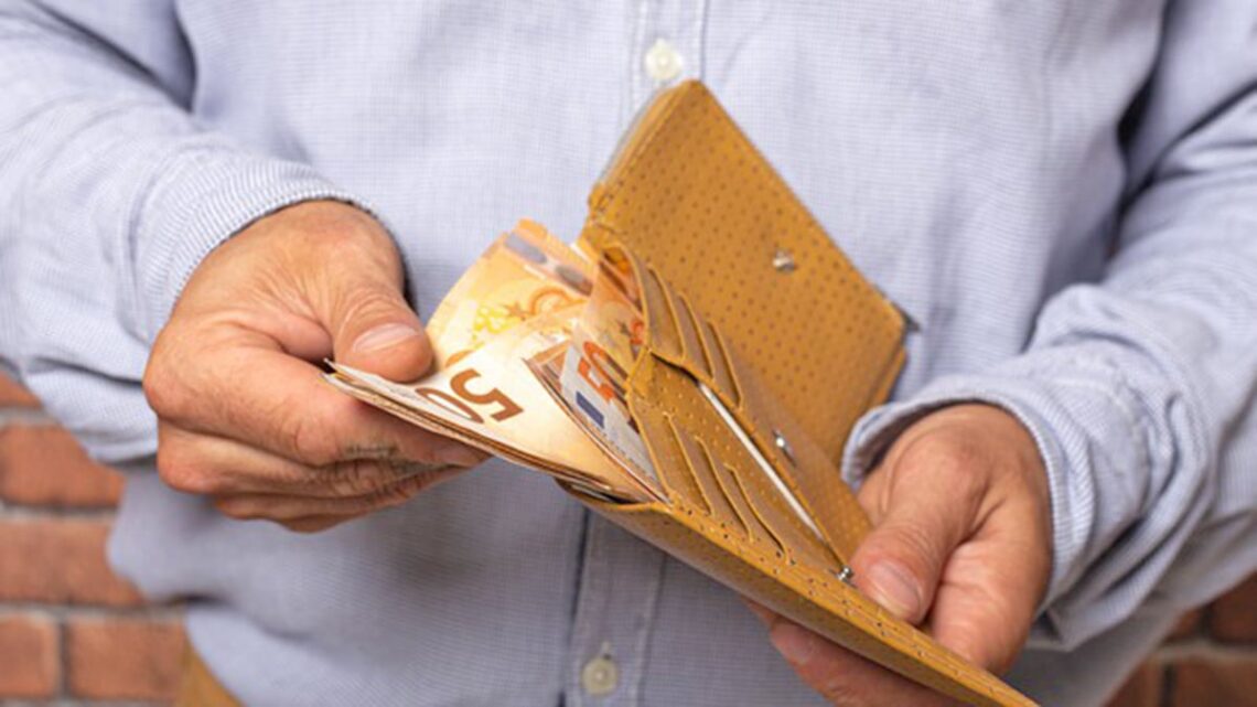 Persona sacando dinero pensiones de la cartera