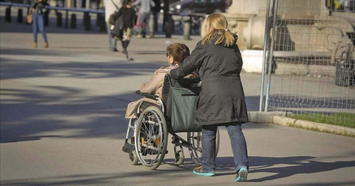 Mujer empujando a una persona mayor