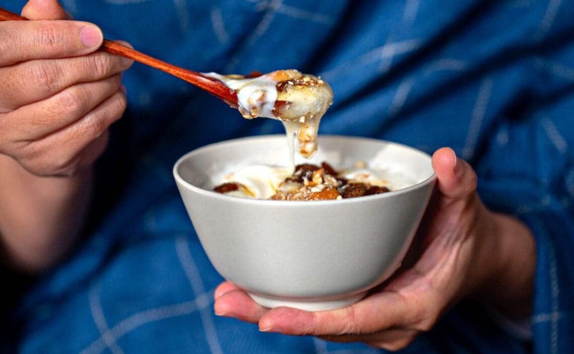Los frutos secos con yogur natural es una fuente rica en proteínas y vitaminas de diversos tipos