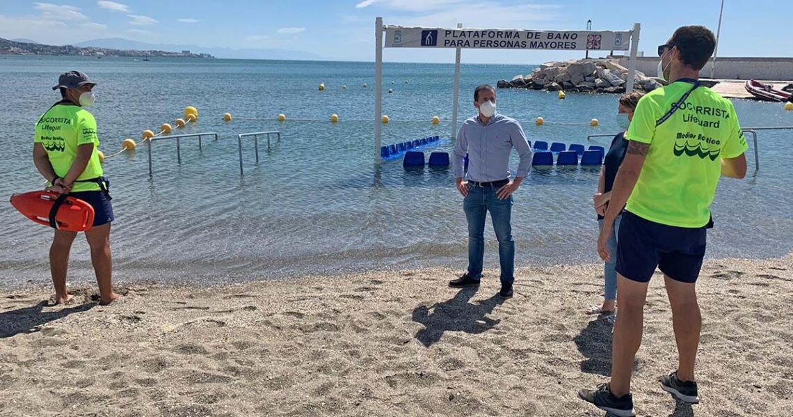 El Ayuntamiento de Fuengirola pone en marcha la plataforma de baño adaptado para mayores y personas con movilidad reducida en la playa de San Francisco. Como ha anunciado el edil de Playas, Javier Hidalgo, “esta temporada, como novedad, incorpora un servicio de socorrismo permanente para velar por la seguridad de todo el que quiera disfrutar de nuestro litoral en esta plataforma”.