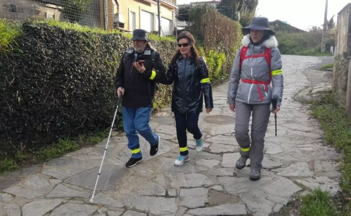 Persona con discapacidad visual realizando el Camino de Santiago