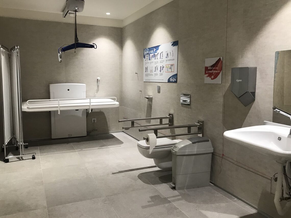 Se trata de una cabina con espacio suficiente tanto para el usuario como para el cuidador, que cuenta con el equipamiento adecuado para cubrir las necesidades higiénicas básicas de las personas con discapacidades severas o con necesidad de apoyos complejos.
