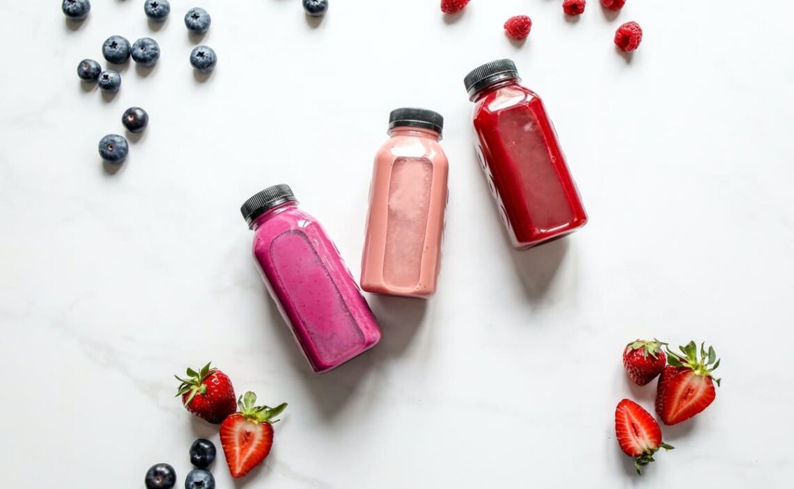 Botellas de jugo rico en fibra