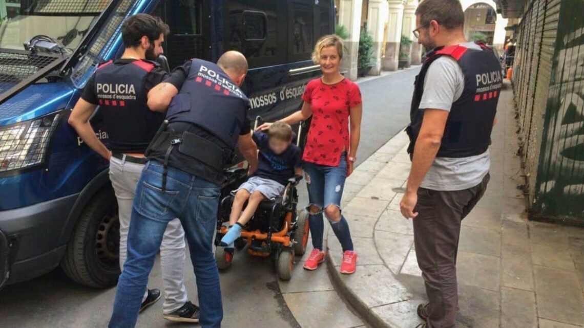 Los mossos con el menor al que le fue robada la silla de ruedas.