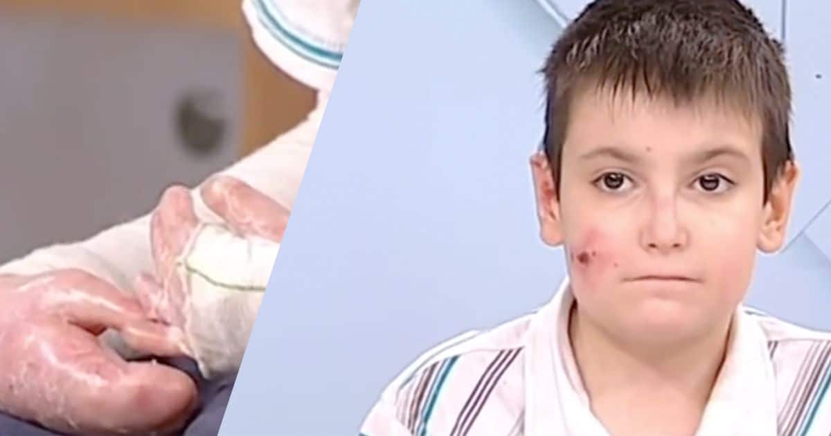 Mikel en el programa de televisión y sus manos afectadas por la enfermedad