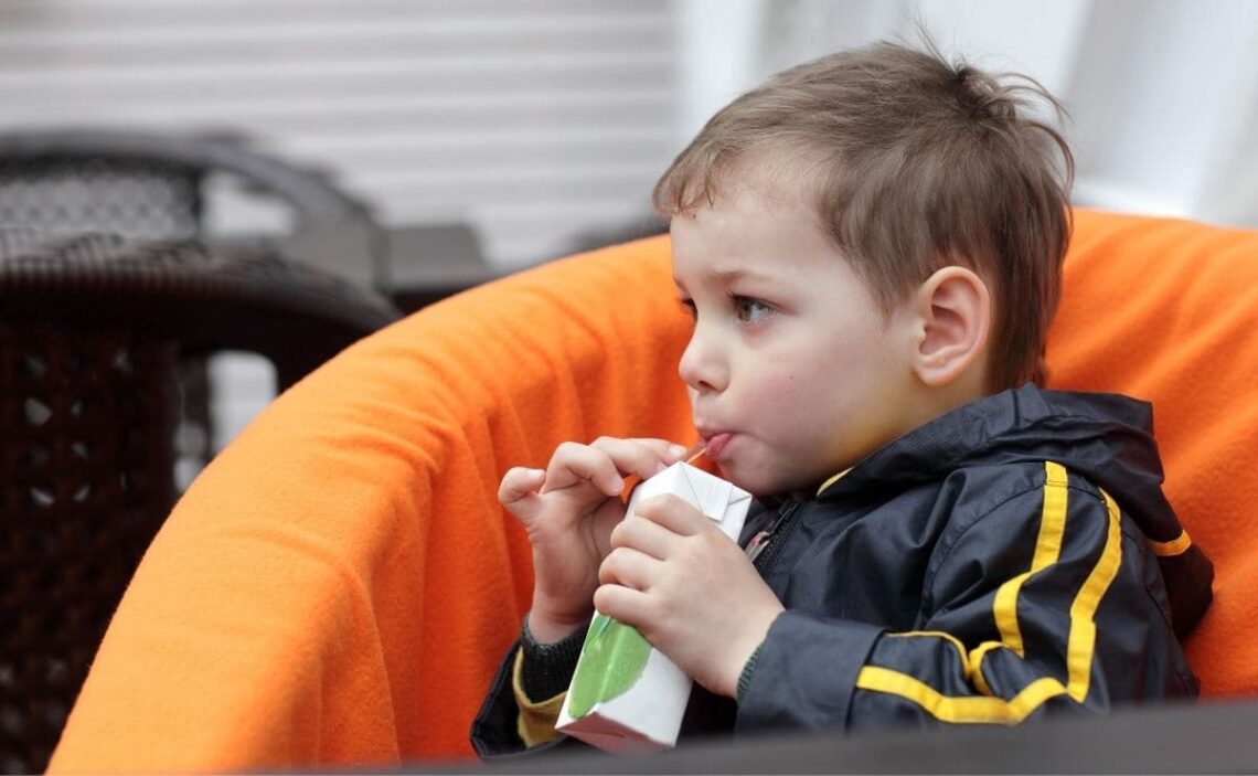 Niño tomando un jugo con antioxidantes