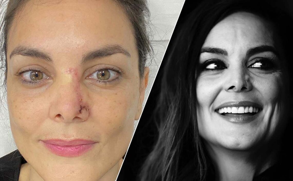 Una pequeña herida que no terminaba de cicatrizar fue confirmada por el cirujano como un carcinoma basocelular. Este es un tipo de cáncer de piel localizado en la nariz. Rápidamente fue intervenida, se lo extirparon y comenzó un periodo de recuperación.