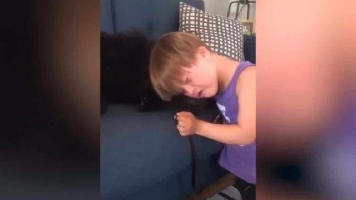 Según Heather Avis, la madre de August, cuando Maeby, la Labradoodle de la familia, volvió a casa después de una intervención en la clínica veterinaria lo único que necesitaba era algo de cariño. Por suerte para la perrita, August estaba ahí para consolar a su peluda amiga.