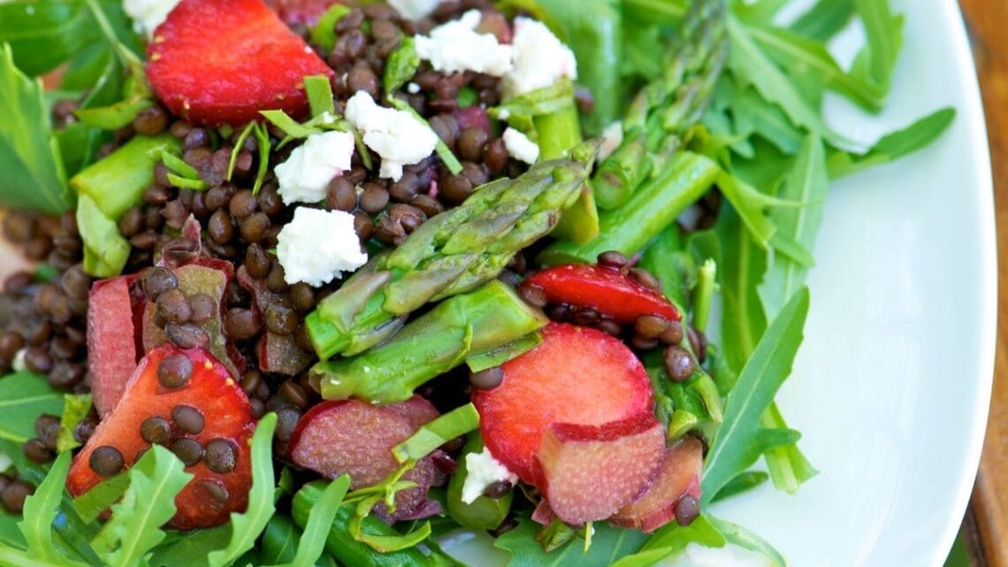 Receta de ensalada de lentejas con espárragos y fresas