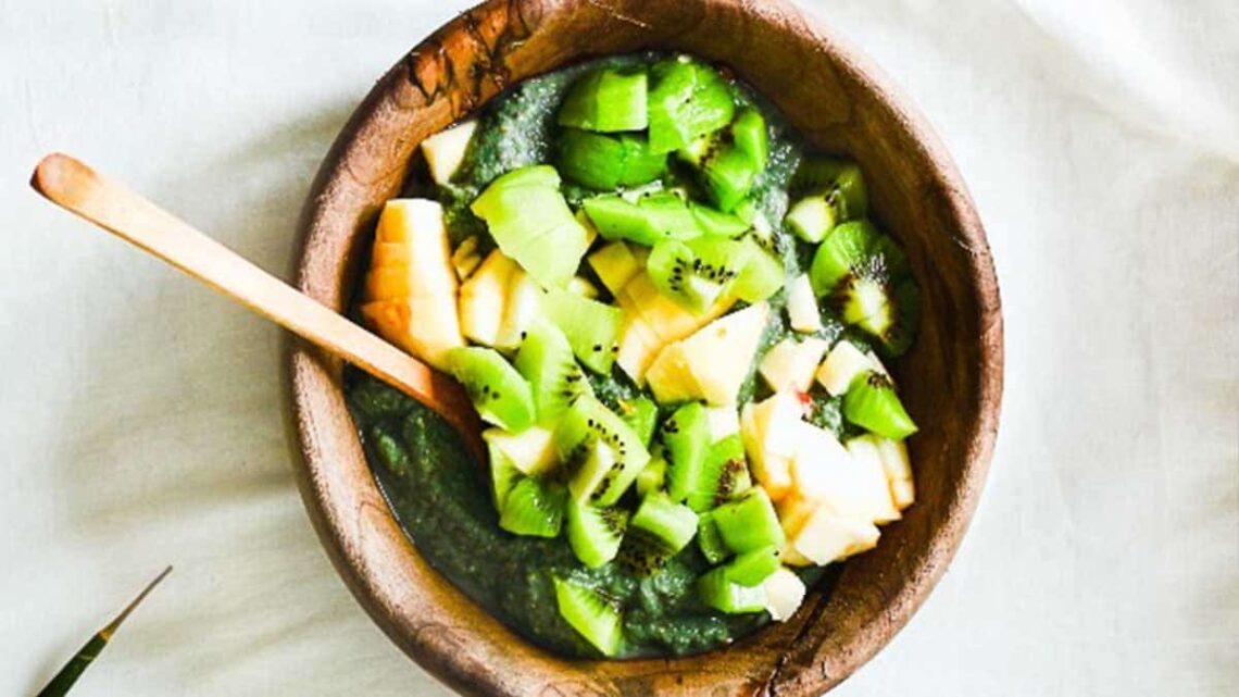 Smoothie bowl con espirulina, plátano y kiwi