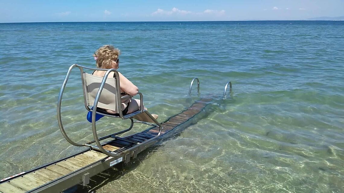Seatrack es una silla metálica que está situada sobre dos guías que se desliza hasta llegar al mar y que permite que los usuarios de silla de ruedas y aquellas personas con movilidad reducida darse un baño en la playa. Seatrack es un dispositivo griego totalmente autónomo, ya que su suministro eléctrico se basa en la generación de energía a través de las placas solares que tienen en su base. Permite acceder al mar de forma autónoma, consiguiendo así un mayor bienestar.