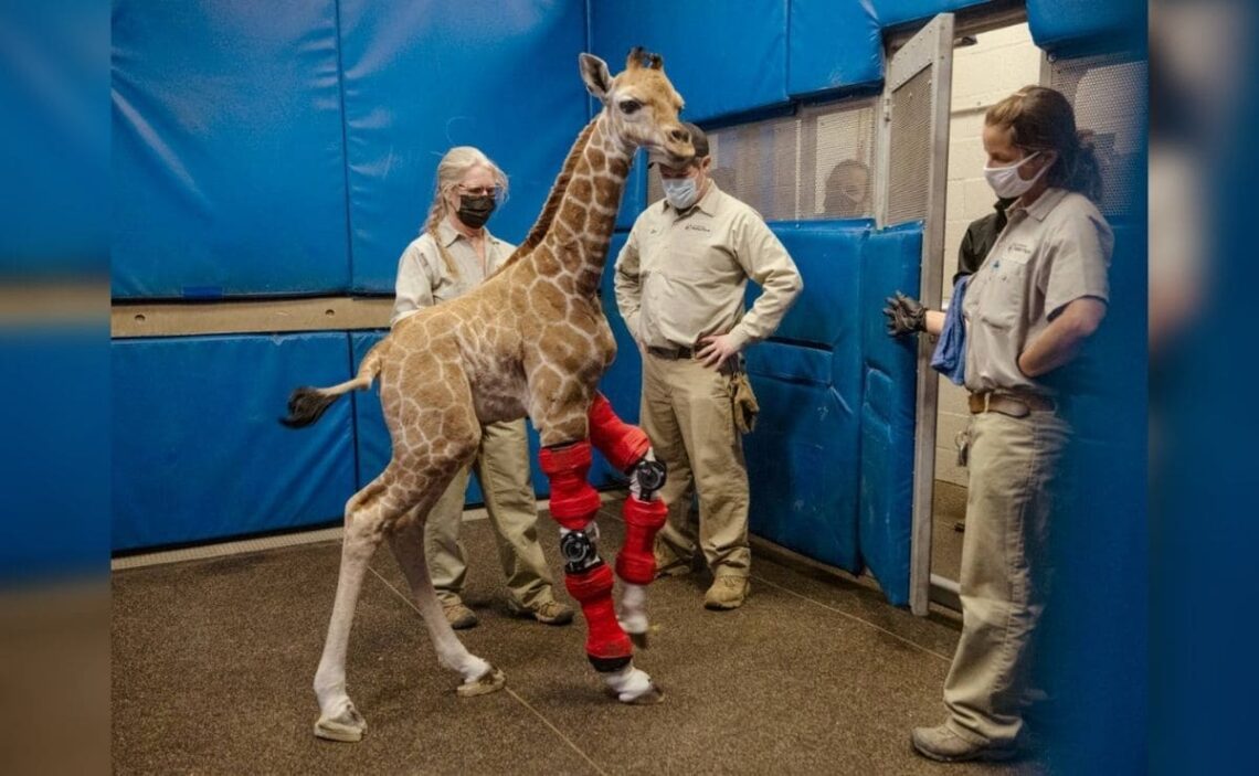 El personal del zoo temía que la jirafa pudiera morir si no lo corregían a tiempo su problema